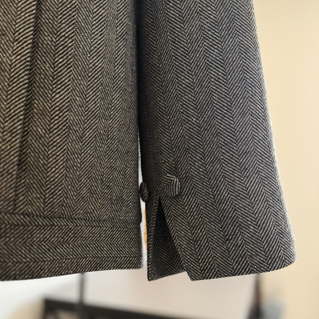 کت زمستانی زنانه با طراحی خاص و دوخت مزونی، ترکیبی از ظرافت و ساختار کلاسیک است. این کت از پارچهی طرحدار جناقی با بافت گرم دوخته شده و برای فصلهای سرد گزینهای ایدهآل محسوب میشود. پارچه ابتدا لاییکشی و سپس آستردوزی شده است. آستر کار دو رنگ بوده؛ قسمت میانی از پارچهی سفید راهراه و پهلوها از ساتن فرانسه زرشکی تشکیل شده که تضادی چشمنواز و لوکس در داخل کت ایجاد کرده است. مرز بین آستر و تنهی اصلی با مغزیدوزی از پارچه ساتن زرشکی دقیق تزیین شده تا تمیزی و دقت دوخت به خوبی نمایان باشد. این کت دارای دکمههای پارچهای مخفی است که طراحی آن را مینیمال و ظریف کرده است. روی سینه، یک جیب با طراحی خاص وجود دارد این جیب به حالتی تمیز و هماهنگ با برشها طراحی شده است. پشت کت دارای برش عمودی ساختاریافته است که باعث خوشفرمی بیشتر روی تن میشود. سرآستینها با برش هفت و دکمهی پارچهای تزئین شدهاند تا جزئیات ظریف دوخت در تمام بخشها حفظ شود. یقهی تخت کلاسیک، فرم آزاد و متعادل کت را کامل کرده و بافت پارچه، حس اصالت و گرما را همزمان منتقل میکند. اين كت به صورت فرى سايز براى سه سايز طراحى شده است، اما جهت انتخاب دقيق تر سايز، لطفا به جدول اندازه گیری موجود در اسلايد آخر تصاوير دقت فرماييد. اين محصول به دليل طراحى كلاسيك و شيك، براى ميهمانى ها و مراسم رسمى در فصول سرد، گزینه اى مناسب است. كيفيت ودوخت مزونى اين محصول باعث مى شود كه در صورت نگهداری مناسب، سالها در كمد لباس شما باقى بماند.