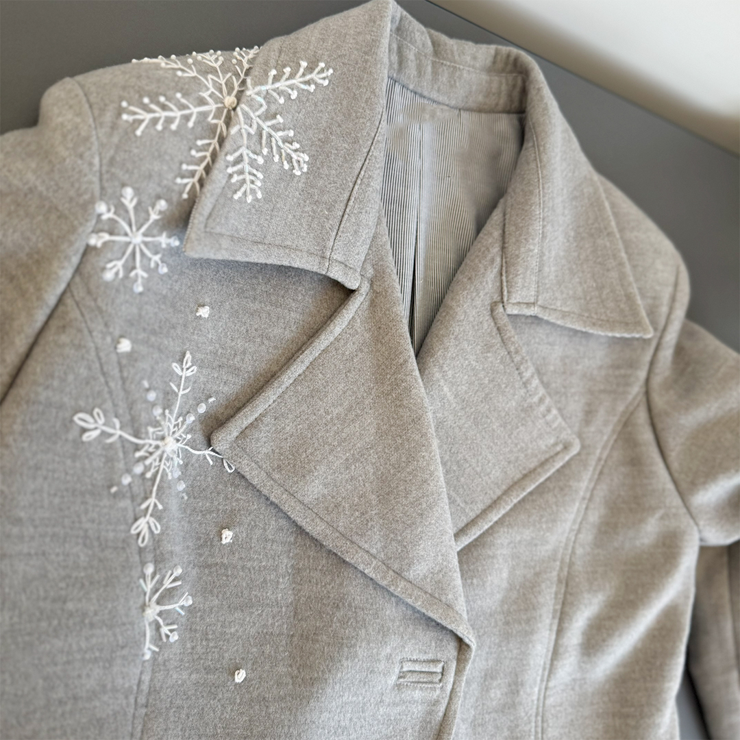 پالتو زنانه از جنس فوتر باکیفیت دوخته شده و داخل کار با آستر پارچهای نخی راهراه پوشش داده شده تا ایستایی و تمیزی دوخت حفظ شود. این پالتو دارای دو جیب پاکتی در پهلو و جادکمههای فیلتاپ در قسمت جلوی کار است. یقه انگلیسی به همراه پاگونهای سرآستین، ظاهر پالتو را کلاسیکتر و رسمیتر کرده است. جزئیات رودوزی تمیز همینطور اجرای کار دست گلدوزی و ملیله دوزی با طرحهای الهام گرفته از المان دانه ی برف، جلوهای ظریف و خاص به لباس بخشیده و آن را مناسب فصل سرد و استایلهای شیک زمستانی کرده است. این محصول به دلیل کیفیت دوخت، ساختار استاندارد و جنس گرم، انتخابی مناسب برای استایلهای رسمی و نیمهرسمی در فصل سرد است. اين پالتو به صورت فرى سايز براى سه سايز طراحى شده است، اما جهت انتخاب دقيق تر سايز، لطفا به جدول اندازه گیری موجود در اسلايد آخر تصاوير دقت فرماييد. اين محصول به دليل طراحى كلاسيك و شيك، براى ميهمانى ها و مراسم رسمى در فصول سرد، گزینه اى مناسب است. كيفيت و دوخت مزونى اين محصول باعث مى شود كه در صورت نگهداری مناسب، سالها در كمد لباس شما باقى بماند.