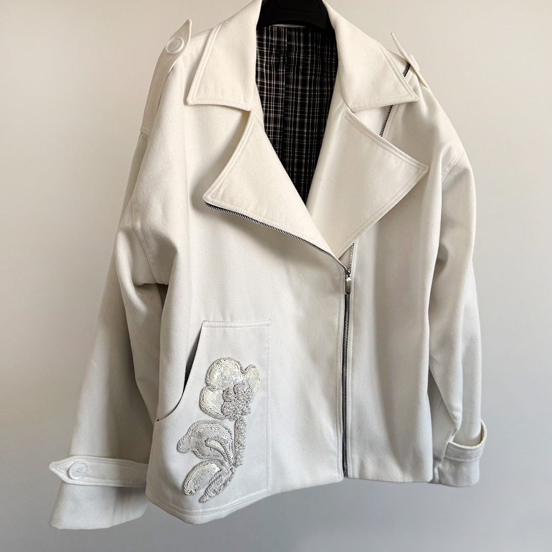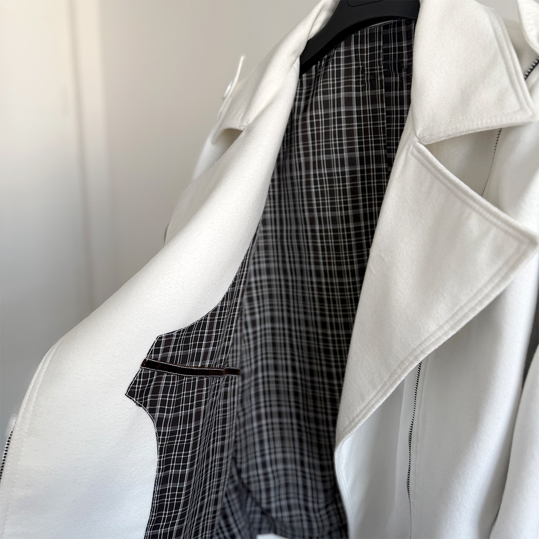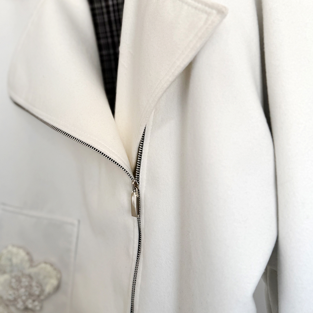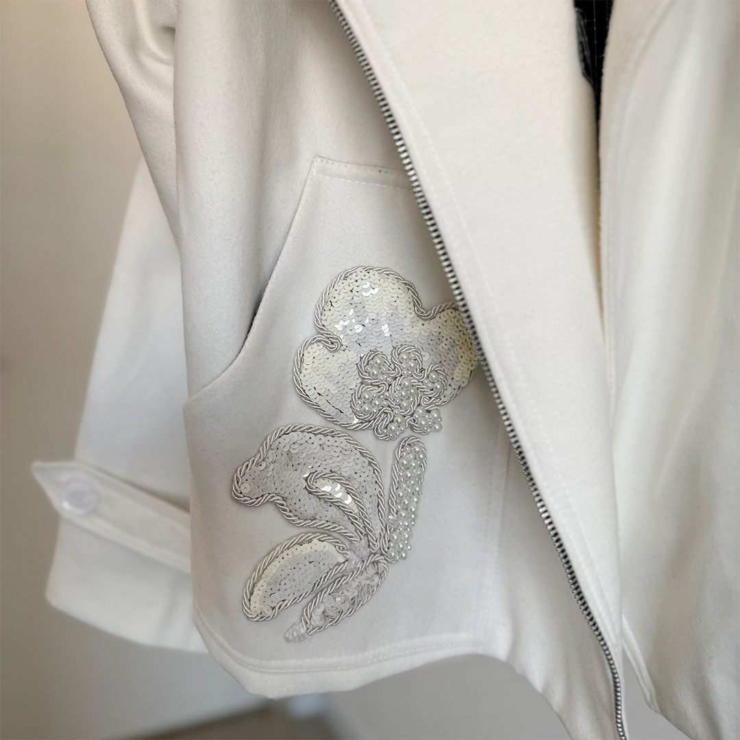 کت فوتر سفید مدل روما بهصورت چپراستی طراحی شده و یقه انگلیسی روهمگرد آن ظاهر کت را شیک و ساختارمند کرده است. جلوی کت با زیپ فلزی باز و بسته میشود و یک جیب با فرم هندسی در قسمت جلو قرار دارد که روی آن هنر دست جواهردوزی با مروارید و پولک بهصورت کاملاً تمیز اجرا شده است. داخل کار با پارچه چهارخانه قهوهای آسترکشی شده و بخش اتصال آستر به پارچه اصلی با نوار مخمل قهوهای به شکل منظم و دقیق دوخته شده تا فرم داخلی کت ظاهری لوکس و حرفهایتر داشته باشد. آستینها در این مدل بهصورت دیفالت بلند طراحی شدهاند و لطفاً به این نکته توجه فرمایید. این محصول به دلیل کیفیت دوخت، ساختار استاندارد و جنس گرم، انتخابی مناسب برای استایلهای رسمی و نیمهرسمی در فصل سرد است. اين كت به صورت فرى سايز براى سه سايز طراحى شده است، اما جهت انتخاب دقيق تر سايز، لطفا به جدول اندازه گیری موجود در اسلايد آخر تصاوير دقت فرماييد. اين محصول به دليل طراحى كلاسيك و شيك، براى ميهمانى ها و مراسم رسمى در فصول سرد، گزینه اى مناسب است. كيفيت و دوخت مزونى اين محصول باعث مى شود كه در صورت نگهداری مناسب، سالها در كمد لباس شما باقى بماند.