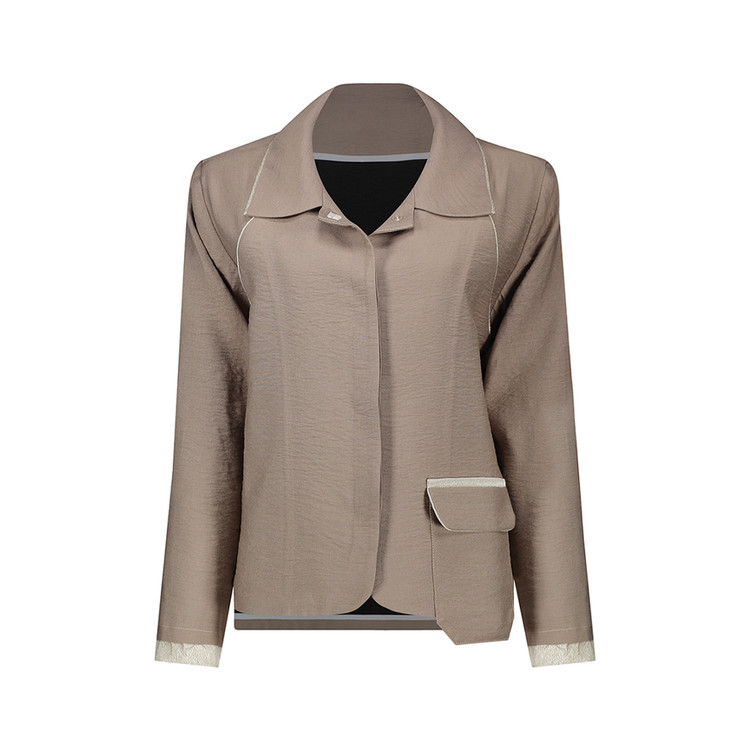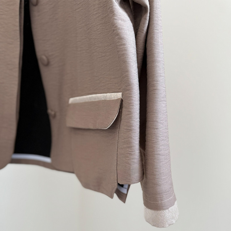 کت زنانه با طراحی خاص و پارچه با کیفیت همچنین دوخت دقیق و ظریف، گزینهای متمایز برای انتخاب شما خواهد بود. جنس پارچه این کت علاوه بر راحتی، زیبایی خاصی به آن بخشیده است. داخل کت لایی کشی شده و برای تمیزی دوخت، گاندوزی از جنس کتان به کار رفته است. دکمه های مخفی کت طراحی زیبا و کاربردی برای باز و بسته کردن آسان دارد. همچنین، دیتیل پارچه ژاکارد بژ در سرآستینها و زیر یقه و قسمت در جیب به استایل کت افزوده و جزئیات زیبایی به آن بخشیده است.ترکیب پارچه ی ژاکارد به رنگ بژ با رنگ نسکافه ای تنه کت هارمونی جذابی ایجاد کرده است.این کت به صورت فری سایز برای سه سایز طراحی شده است، اما جهت انتخاب دقیقتر سایز، لطفاً به جدول اندازهگیریهای موجود در اسلاید آخر تصاویر دقت فرمایید. جیب دردار این کت کاربردی است و به راحتی امکان استفاده روزمره را فراهم میآورد.این محصول به دلیل طراحی کلاسیک و شیک، برای میهمانیها و مراسم رسمی گزینهای مناسب است. کیفیت و دوخت مزونی این محصول باعث میشود که در صورت نگهداری مناسب، سالها در کمد لباس شما باقی بماند.