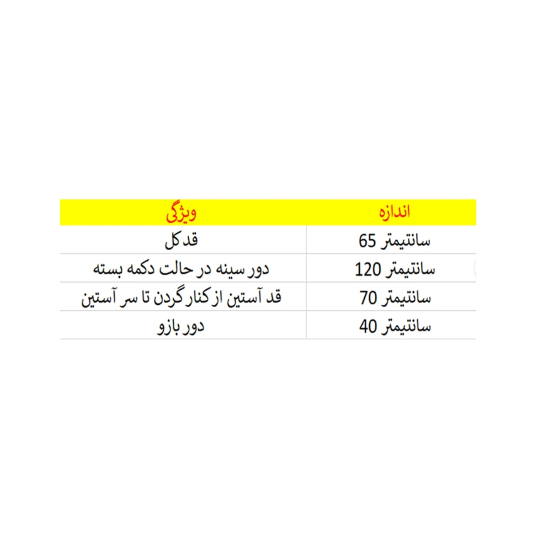 بارانی،به رنگ طوسی،جنس فاستونی ،پارچه ی بسیار با کیفیت و دوخت دقیق ،داخل کارجهت تمیزی دوخت و ایستایی مناسب تماما لایی کشی و گاندوزی جنس کتان دارد ، چهارفصل ،رودوزی روی کار اجرا شده که جلوه ی زیبایی به کار داده است،این کاربه صورت فری سایز برای سه سایز طراحی شده است، اما جهت انتخاب دقیقتر سایز، لطفاً به جدول اندازهگیریهای موجود در اسلاید آخر تصاویر دقت فرمایید، یقه ی انگلیسی ، در قسمت سرشانه و سرآستین پاگون و دکمه اجرا شده،آستین رگلان ،کمربند سگک دار بلند دارد،در عکس دورتا دور کار پیچیده شده است،دکمه ها جنبه ی نما دارد و جلوی کار به صورت جلو باز است. محصول کیفیت دوخت و پارچه ی مزونی دارد.این کار مناسب میهمانی ها و مراسم و استایل کژوال و روزمره است، افراد با سایز بالاتر هم با توجه به اندازه ی دور سینه ی درج شده در این متن ، محصول برایشان اندازه است ،منظور از این توضیح این است که فری سایز بودن این کار پتانسیل استفاده برای سایزهای بالاتر را دارد. پارچه ی فاستونی و چهارفصل این کار جزو آن دسته از پارچه هایی ست که در صورت نگهداری مناسب چندین سال در کمد لباس شما باقی خواهد ماند. قد کل 65 سانتیمتر/ دور سینه در حالت رو هم گرد یقه 120سانتیمتر/ قد آستین از کنار گردن تا سر آستین 70 سانتیمتر/ دور بازو 40 سانتیمتر می باشد