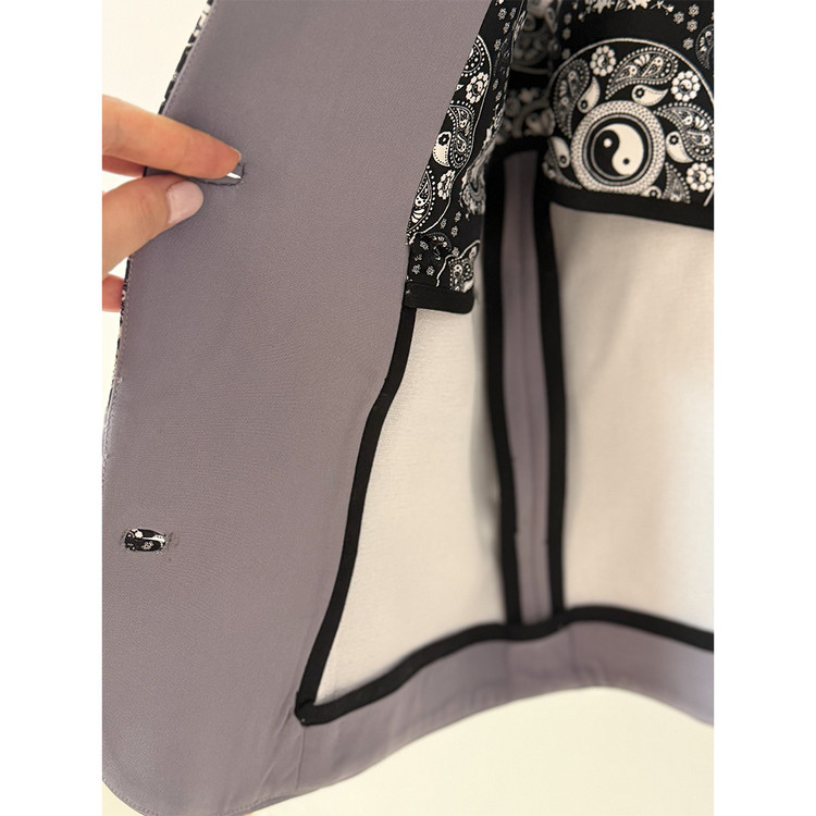 وست زنانه مدل آیس با لاییکشی کامل و گاندوزی کتان مشکی در لبههای داخلی دوخته شده تا فرم و استحکام بهتری داشته باشد. داخل کار بهصورت نیمآستر با پارچه طرح بتهجقه پوشش داده شده و به دلیل جنس و ساختار، این وست گزینهای مناسب برای استفاده در چهارفصل است. در دو طرف لباس، جیبهای خورجینی بهصورت کاربردی و تمیز اجرا شده و جا دکمههای فیلتاپ روی جلوی کار به زیبایی دوخته شدهاند. در بخش میانی جلوی وست، یک برش عمودی همراه با تکهدوزی پارچه طرحدار بهکار رفته که علاوه بر ایجاد تضاد رنگی چشمگیر، طراحی لباس را خاصتر و متفاوتتر کرده است. این محصول به دلیل کیفیت دوخت، ساختار استاندارد و جنس گرم، انتخابی مناسب برای استایلهای رسمی و نیمهرسمی در چهار فصل است. اين كت به صورت فرى سايز براى چهار سايز طراحى شده است.