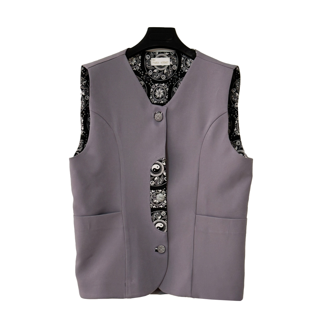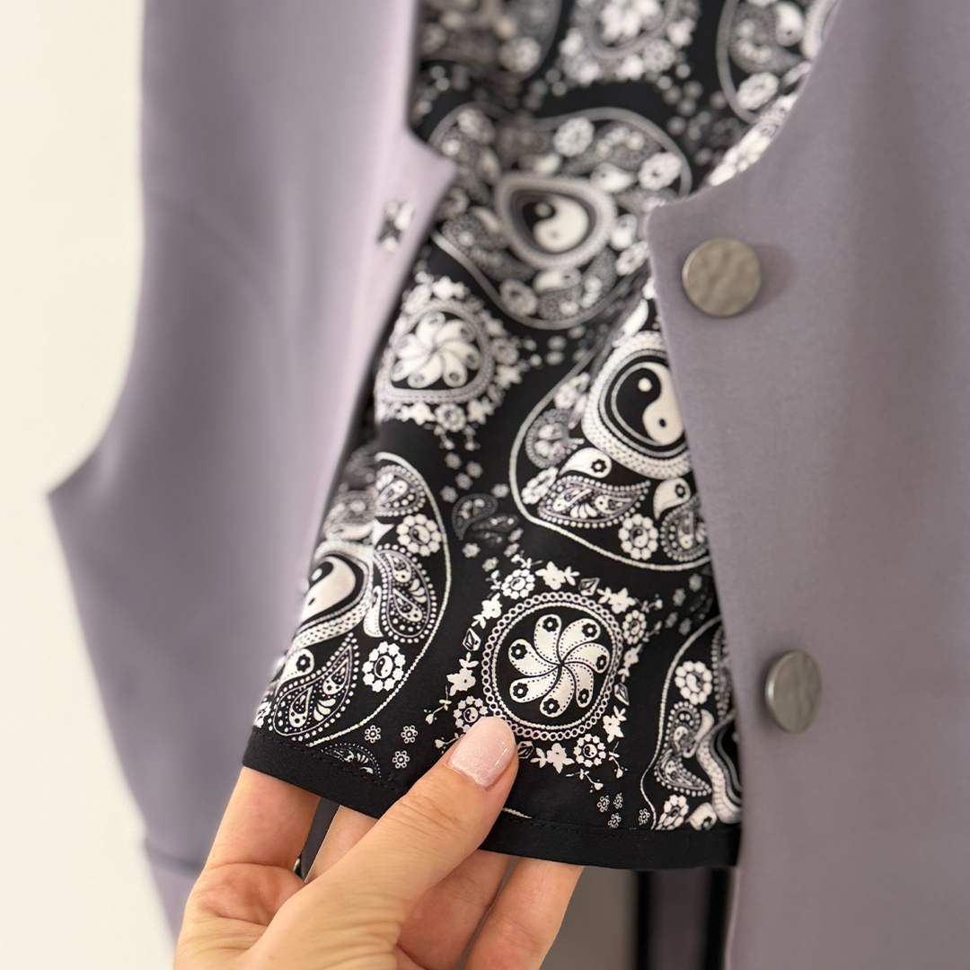 وست زنانه مدل آیس با لاییکشی کامل و گاندوزی کتان مشکی در لبههای داخلی دوخته شده تا فرم و استحکام بهتری داشته باشد. داخل کار بهصورت نیمآستر با پارچه طرح بتهجقه پوشش داده شده و به دلیل جنس و ساختار، این وست گزینهای مناسب برای استفاده در چهارفصل است. در دو طرف لباس، جیبهای خورجینی بهصورت کاربردی و تمیز اجرا شده و جا دکمههای فیلتاپ روی جلوی کار به زیبایی دوخته شدهاند. در بخش میانی جلوی وست، یک برش عمودی همراه با تکهدوزی پارچه طرحدار بهکار رفته که علاوه بر ایجاد تضاد رنگی چشمگیر، طراحی لباس را خاصتر و متفاوتتر کرده است. این محصول به دلیل کیفیت دوخت، ساختار استاندارد و جنس گرم، انتخابی مناسب برای استایلهای رسمی و نیمهرسمی در چهار فصل است. اين كت به صورت فرى سايز براى چهار سايز طراحى شده است.